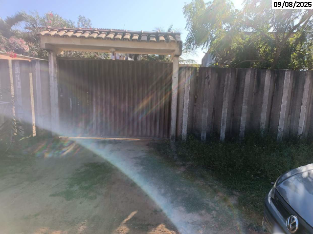 OBS.: Sobre o referido lote, encontra-se edificada uma residência de padrão construtivo simples, popular econômico, com área aproximada de 71m². A construção apresenta estrutura em alvenaria, cobertura de telhas de fibrocimento; piso interno revestido com cerâmica em todos os cômodos; imóvel composto por sala, cozinha, banheiro, um quarto, varanda aberta, lavanderia, área externa com quintal; murado em todo o perímetro, com portão de acesso frontal; área externa predominantemente em solo batido; construção e acabamento compatíveis com padrão econômico, em estado geral de conservação regular. O imóvel está situado em região urbana consolidada, com acesso por via não pavimentada, dotada de energia elétrica e abastamento de água, próximo a comércios e transporte público, e aproximadamente 200 metros da rodovia principal.